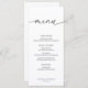 Modern, elegant menu features a minimalist black and white design with modern lines. Personalize with your event's menu with the easy to edit template featuring an elegant script font and classy serif font.