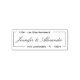 Elegant Modern Minimalist Hand Lettered Script Wedding Invitation RSVP Return Address Self Inking Stamp. These couple address stamps featuring your name in a pretty handwriting style font typography and return address info, around rectangle line border, easy to personalise them. Save time and add style to your Wedding Save the dates, RSVP, Bridal Shower, Baby Shower, Birthday Party, Graduation Announcements, House Warming, Christmas Card and return address label stamp for Invitation. They even make great Wedding gift for family membersand friends, Christmas gifts or cute housewarming gifts for a new couple!