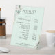 Modern, elegant white flowers, light-green, price list pedestal sign. Edit your product in a few minutes by adding your data. You can change the font/colour/position by "further personalisation".
