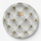 Modern Elegant White Leather Tufted Gold Paper Plate