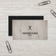 Elegant customisable business card template with wooden background and black scissor pattern. Elegant and simple design, perfect for beauty salon, hairdresser, barber, hairstylist.