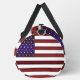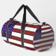 This design of the American flag presents some unique traits. The colours are vivid, with a striking deep blue for the stars' background and a rich red for the stripes. The colours are vivid, with a striking deep blue for the stars' background and a rich red for the stripes. The stars and stripes appear to be embossed or raised, creating a 3D effect. The colours have a gradient effect, adding depth and dimension to the design. The overall style gives a modern and stylised interpretation of the traditional American flag.