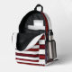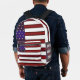 This design of the American flag presents some unique traits. The colours are vivid, with a striking deep blue for the stars' background and a rich red for the stripes. The colours are vivid, with a striking deep blue for the stars' background and a rich red for the stripes. The stars and stripes appear to be embossed or raised, creating a 3D effect. The colours have a gradient effect, adding depth and dimension to the design. The overall style gives a modern and stylised interpretation of the traditional American flag.
