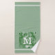Monogrammed emerald and sage green plus white marble geometric bath towel set. Replace the initial with you own.