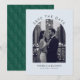 Announce your special day with the architectural elegance of the Metropolitan Emerald save the date. This modern design creates a stunning "window" effect, framing your engagement photo within a clean arch shape set against a serene Glacial Ice blue background. It foreshadows the unique shape of your future invitation while keeping the format affordable and mail-friendly. The reverse side features our signature Emerald Arch pattern—a deep midnight green Art Deco design with silver-look accents—ensuring that your announcement makes a luxurious, stylish impression from every angle.