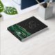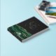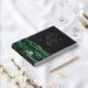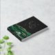 This elegant wedding guest book features an emerald green watercolor agate design trimmed with faux gold glitter. Easily customise the real gold foil text on an off-black background, with the names of the couple in whimsical handwriting calligraphy over a large grey ampersand. Add additional text of your choice to the front and spine.