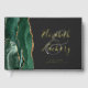 Modern Emerald Green Agate Gold Script Dark Guest Book