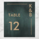 Modern Emerald Green Black Wedding Table Number Wine Label