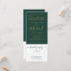 An all in one wedding invitation featuring modern signature script names and elegant gold typography on an emerald green background. The invitation includes an RSVP card that can be cut off and guest information details. Designed by Thisisnotme©