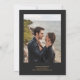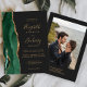 The left-hand edge of this elegant modern wedding invitation features an emerald green watercolor agate border trimmed with faux gold glitter. The customisable text combines gold-coloured handwriting, copperplate and italic fonts on an off-black background. On the reverse side, easily replace the sample image with a photo of the future bride and groom, and add a few lines of additional information such as your wedding website URL.