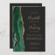 Modern Emerald Green Gold Agate Photo Dark Wedding Invitation