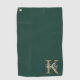 Modern Emerald Green Gold Monogram Script Golf Towel