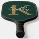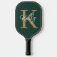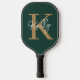 Modern Emerald Green Gold Monogram Script Pickleball Paddle