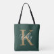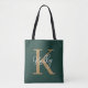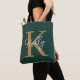 Modern Emerald Green Gold Monogram Script Tote Bag