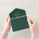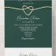 Elegant and modern emerald green and gold wedding all-in-one invitation with a minimalist design and a chic gold heart accent. This eco-friendly seal and send invitation is perfect for a sophisticated fall or winter wedding. It includes RSVP details with a QR code for easy guest response. Personalise the text to match your special day.