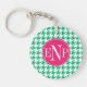 Modern Emerald Green Houndstooth Personalised Key Ring