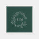 Modern Emerald Green Leafy Crest Monogram Wedding Napkin