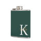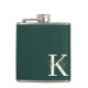 Modern Emerald Green Monogram Script Hip Flask