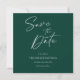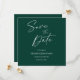 Announce your special day in a stylish and elegant way with this Modern Emerald Green Save The Date card. The minimalist design features a simple and sleek look with a trendy script "Save the Date saying" that adds a hint of sophistication. The emerald green colour palette creates a chic and glamourous look that's sure to impress your guests. Whether you're planning a minimal, rustic, bohemian, or modern wedding, this save the date card will perfectly complement your theme.