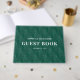 Preserve your wedding memories in the luxurious Metropolitan Emerald guest book. This stunning keepsake is designed to look like a custom-bound volume, featuring our signature "Emerald Arch" pattern—a deep midnight green Art Deco design with silver-look accents—wrapping seamlessly from the front cover, over the spine, to the back. With crisp white typography printed directly on the pattern for a modern "foil-stamped" effect and a stylish monogram on the spine, this book is destined to become a beautiful coffee table piece in your home long after the celebration ends.