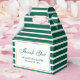 Modern emerald green wedding favour boxes. Easily personalise these emerald green striped wedding favour boxes with your event details.