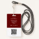 The Modern Employee Gold Circle Photo ID Dark Red Company ID Badge is a sleek and professional way to showcase your employees' information, with customisable features to fit your company. This badge includes a photo, logo, name, QR code, all displayed in a minimalist white and dark red theme design. The customisable elements make it a versatile and practical solution for any business or organisation.