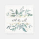 Modern Eucalyptus Calligraphy Monogram Wedding Napkins.