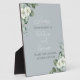 Welcome your guests in style with our Modern Eucalyptus Design Wedding Sign Plaque. A fresh, modern design featuring elegant eucalyptus leaves, and white flowers. This plaque invites your guests to take a program and find a seat. It's perfect for weddings, baby showers, anniversaries, or any special occasion. The soothing green tones and clean lines create a contemporary look that complements any event décor.