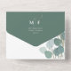 This beautiful design features a modern eucalyptus elegant rustic, a botanical greenery watercolor simple, low budget network calligraphy, elegant seal and sends typography, calligraphy trifold budget set, a modern monogrammed folded marriage, sage green eucalyptus foliage, with a trendy budget-friendly and, stylish sophisticated and chic, simple classy, elegant olive