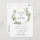 Modern Eucalyptus Floral Wedding Save the Date Postcard.