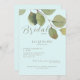 Eucalyptus Bridal Shower Invitation. Ice Blue Background. Modern typography. Elegant and modern. Gold text.