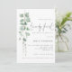 Modern Eucalyptus Script 21st Birthday Party. Minimalist botanical style, with watercolor greenery flowing down on the left hand side and text to the right. A set handwritten script for Twenty First and the rest of the text you can easily personalise.