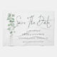 Modern Eucalyptus Script Keepsake Save The Date. A handy keepsake to invite your guests to save your date. A minimalist botanical design with Save The Date in a modern set script. The rest of the text you can easily personalise. Text and background colours can be changed if you wish via the edit further option.