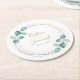 Modern Eucalyptus Watercolor Gold Script Wedding Round Paper Coaster