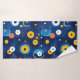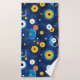 Navy Blue bath towels with bohemian evil eye pattern. Expel all the bad vibes from your bathroom with these evil eyes!
