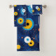Modern Evil Eye Pattern Navy Blue BOHO Bath Towel Set