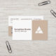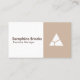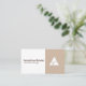 The front side features a clean white and warm beige color block layout, highlighting the name and title with clear, professional typography. A geometric triangle-style logo adds a modern and strategic visual element, symbolizing growth, leadership, and structure.