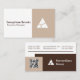 The back side showcases a rich brown accent combined with a soft neutral tone, presenting your brand name alongside a QR code for quick digital access. This functional yet stylish layout enhances networking efficiency while maintaining a premium corporate feel.