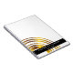 A professional notebook design featuring golden circles over a white background embellished with a thin black band. Personalise with your details. See the matching business card here: