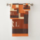 Warm your home bathroom this fall with this custom modern colour block bath towel set. Towel set features blocks of autumn colours: warm shades of brown, red, orange, and yellow.