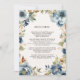 Modern Fall Floral Navy Dusty Blue Wedding Menu Invitation