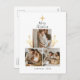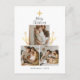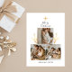Simple, modern, and elegant Christmas Holiday postcard featuring three of your favourite family photos in a Christmas tree-shaped collage, with faux gold pine branches, script Merry Christmas wishes, and a gold star above. A custom message is featured on the reverse, accented by a chic golden bow ribbon. Upload your photos and customise the text with your family name, year, and Christmas greeting message.
