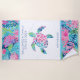 Get ready for your next tropical getaway or ocean adventure with this cute and modern personalised beach towel! Perfect for a cruise ship vacation, this beach towel can be customised with your family name, cruise type, year etc. Featuring navy blue typography and a bold pink, blue, and green sea turtle design swimming in coral, it adds a stylish touch to your travel accessories. Let this pool towel be a reminder to stay happy floating in the sea wherever your travels take you. Add a touch of tropical charm with this unique and vibrant pool accessory.