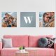 Cherish family memories with this print set including two photographs and your family monogram on grey-blue background.