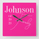 This is a modern, personalised, family name design. It is in trending hot pink with stylish script typography. It has space for you to add your family name and year established. This chic design is ideal as a personalised house warming gift, gift for newlyweds, or perfect as a new addition to your home decor. To personalise add your name in the personalise this text box. To change the colour or font check out the design editing tool. For any help with personalisation or for a custom design, message me via zazzle chat or email: ursuladawnmoon@gmail.com