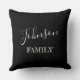 Fun and cute throw pillow with room to personalise or customise with your family name. This personalised typography combination is offered in white fonts over a rich minimalist black canvas. Available in several fabric and size choices, for your family room or porch!