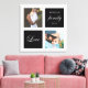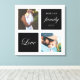 Pastel colour palette two photo customised wall art with elegant script "love" and "family" and your own monogram and date. Beautiful personalised home decor accent