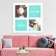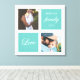 Pastel colour palette two photo customised wall art with elegant script "love" and "family" and your own monogram and date. Beautiful personalised home decor accent