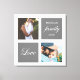 Pastel colour palette two photo customised wall art with elegant script "love" and "family" and your own monogram and date. Beautiful personalised home decor accent