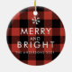 Modern Family Red Buffalo Plaid With Photo Ceramic Tree Decoration